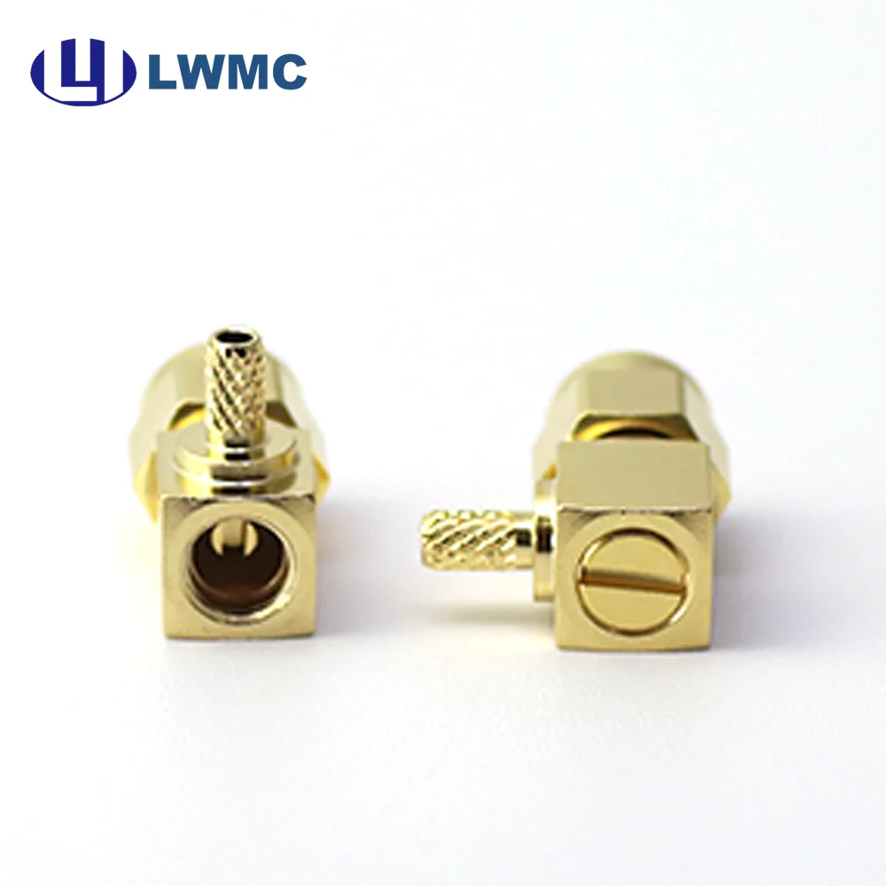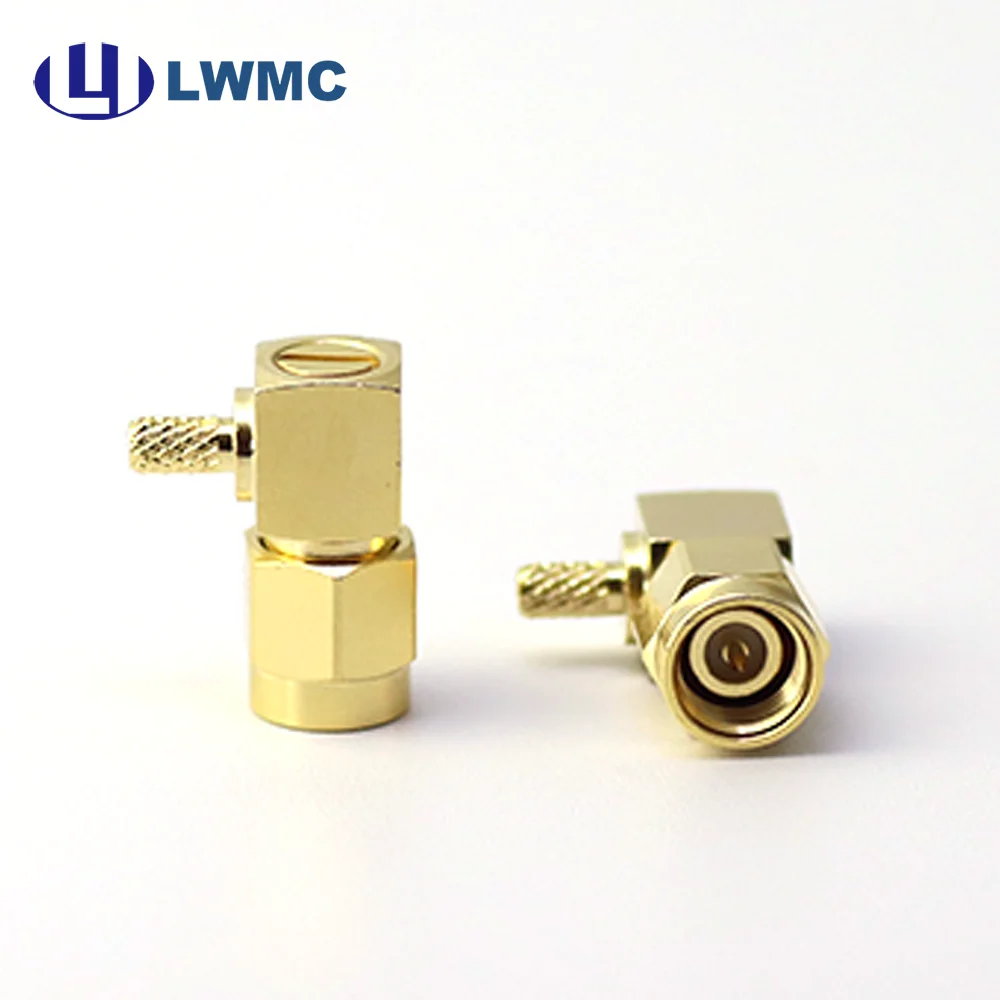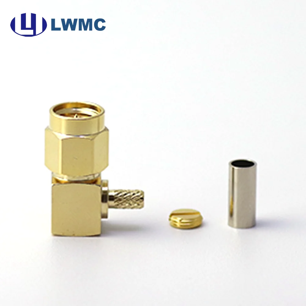 SMA Male Right Angle (R/A) Crimp Connector for LMR-100 Coaxial Cable – 50 Ohm, Compact Design